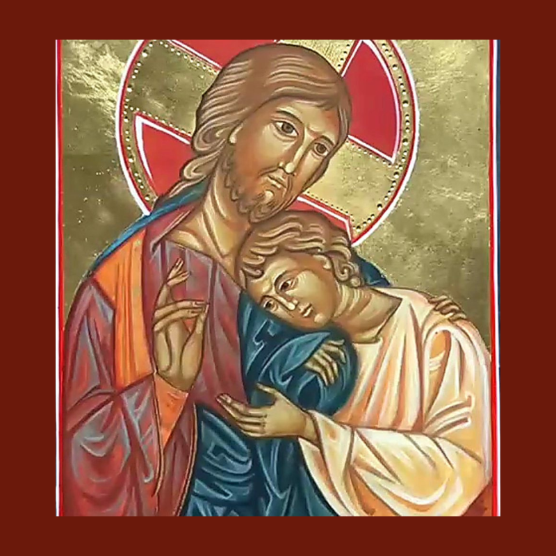 Raffigura Gesù che accoglie Giovanni sul suo petto, richiamando il passo evangelico dell’Ultima Cena in cui Giovanni si china sul cuore del Maestro (Gv 13,23).
